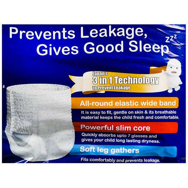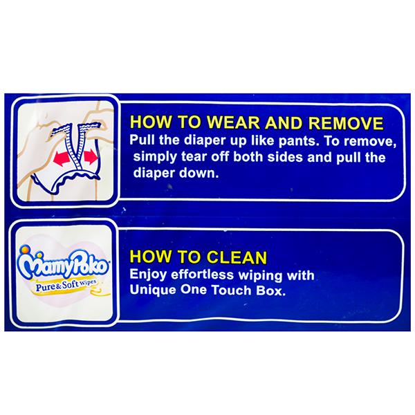 Mamy Poko pants are pant styled diapers that make diapers easy to wear. And the soft and breathable material takes care of baby's sensitive skin. The crisscross absorbent sheet absorbs urine & spread that equally, and the stretchable thigh support prevents the leakage, thus baby remains dry.