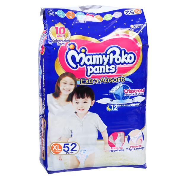 Product Description: MamyPoko pants are is easy to wear pant style diapers. The soft touch inner sheet with extra soft waistband makes the diaper gentle for the baby’s skin and also helps to prevent redness on the waist area.