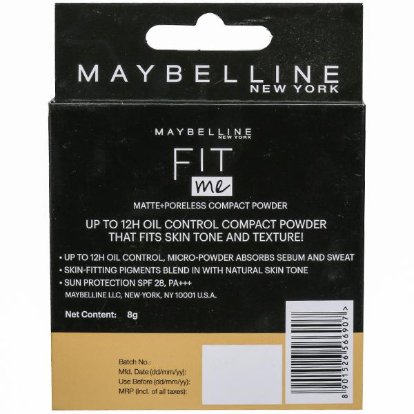 Product Information – Maybelline New York Fit Me compact has UV filters that protect skin from both sun darkening and damage. Helps you stay 12 Hr Fair and Fresh. Contains Perlite, a pure mineral that helps absorbs oil and sweat. Gives a naturally perfect-looking complexion. Contains SPF 28 to protect your skin. Suitable for everyday use. Perlite, a pure mineral that visibly lightens complexion, while absorbing sweat and oil UV filters protects from sun darkening and damage Keeps your complexion looking fresh for 12 hours and feels perfect all day long even in hot, humid weather. Superior puff and packaging.