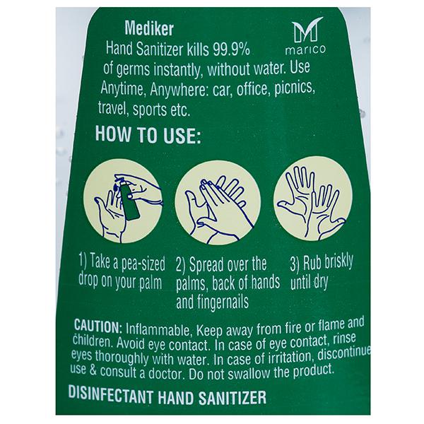 Keep your hands clean and germ free on the go with Mediker Hand Sanitizer. It is Rinse free & Non Sticky. It kills 99.99% germs without water leaving your hands soft.