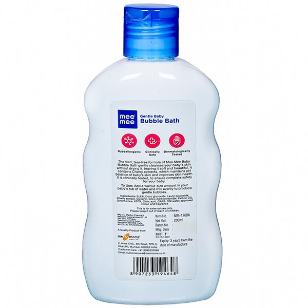 Product Information: Some of your best memories with your baby will be watching him/her splashing about gleefully in the bath tub. Make the experience even more joyful with Mee Mee Gentle Bubble Bath. The mild formula of this product gently cleanses your baby’s skin without drying it, leaving the skin soft and beautiful. You do not have to worry in case some bubbles goes into your little one’s eyes; its tear-free formula ensures that splashing the eyes thoroughly with water will be enough. The Bubble Bath also contains Olive Oil, a good source of Vitamin E, which moisturizes and improves skin health over time. It is clinically tested, to ensure complete safety for your baby.