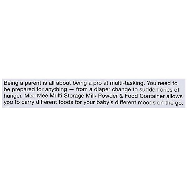 Being a parent makes you a pro at multi-tasking. Be it diaper change or sudden cries of hunger, you are always prepared to handle it all. Mee Mee Multi Storage Food Container is a must-have if you want to handle such baby crises with panache.These multicoloured containers make it easier for you to carry a variety of baby foods such as semi-solids, milk powder, purees, mashed fruits etc that would suit your baby's different moods, while onThe go.