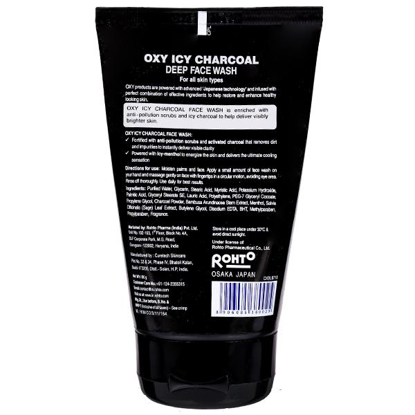 Product Information - The perfect partner for your skin that endures long exposures to sun, dust, and pollution throughout the day. This unique deep-cleanser utilizes the ability of Activated Bamboo Charcoal to detoxify the skin, without drying it out. OXY Icy Charcoal Deep Face Wash unclogs pores, cleanses impurities and removes dead skin cells. Suitable for all skin types, it effectively absorbs excessive sebum and clears dirt residues deep from the pores, instantly delivering visibly brighter skin with ultimate cooling sensation.