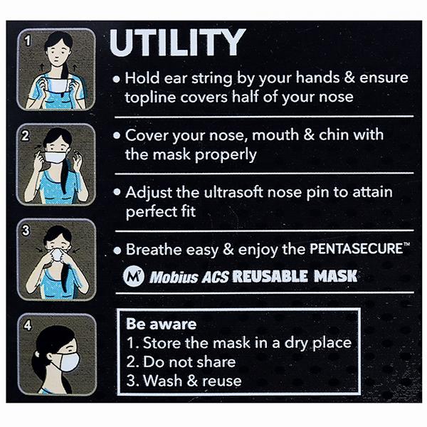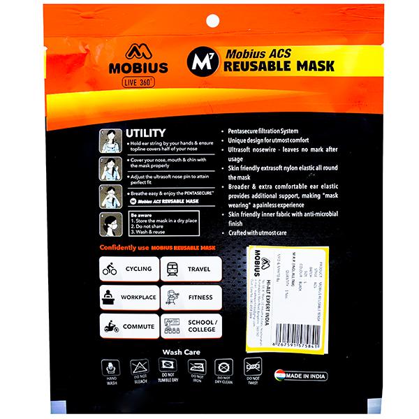 Mobius Reusable M7 ACS Face Mask is an anti-microbial protective mask, which comes with a pentasecure filtration system that keeps one safe by providing protection against dust, air pollution, vehicle smoke, sandy air, and any sort of virus contamination. It is super breathable, compact, ultralight, and also splash resistance. One can wear the mask anywhere including school, college, workplace, gym classes, and even during cycling and travel.