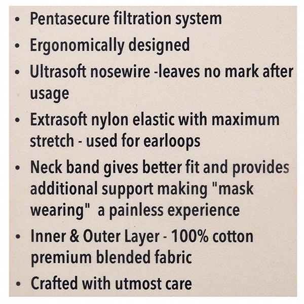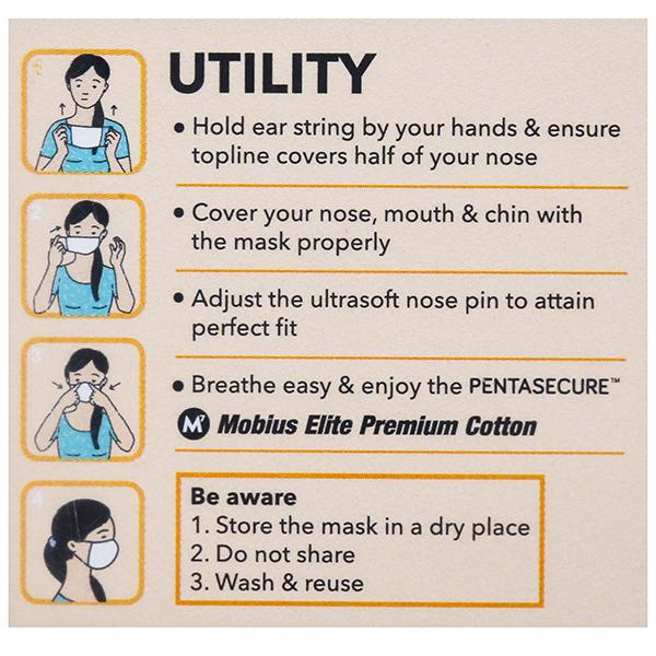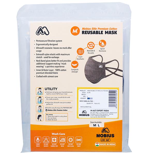 Mobius Reusable M7 Elite Premium Cotton Face Mask is an anti-microbial protective mask, which comes with a pentasecure filtration system that keeps one safe by providing protection against dust, air pollution, vehicle smoke, sandy air, and any sort of virus contamination. It is super breathable, compact, ultralight, and also splash resistance.