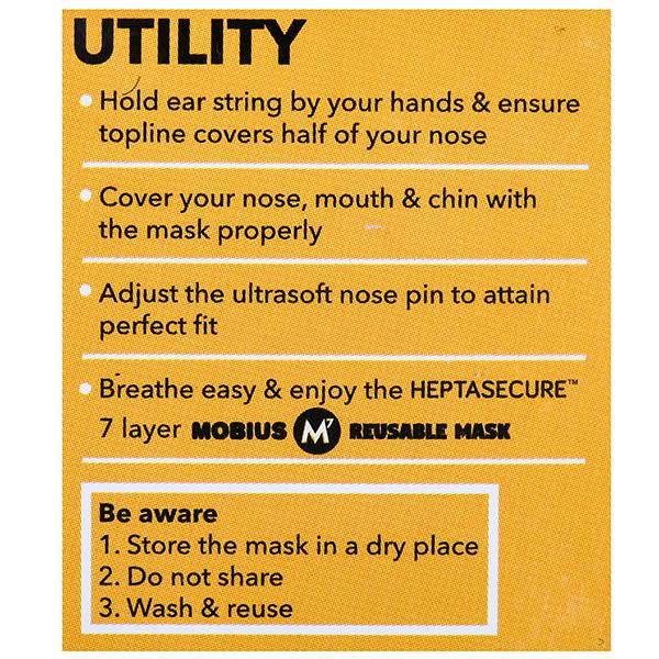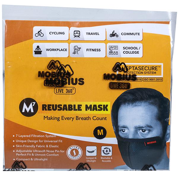 Mobius Reusable M7 Face Mask is an anti-microbial protective mask, which comes with a heptasecure filtration system that keeps one safe by providing protection against dust, air pollution, vehicle smoke, sandy air, and any sort of virus contamination. One can wear the mask anywhere including school, college, workplace, fitness classes, and even during cycling & travel.