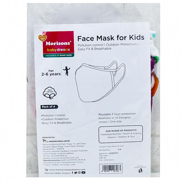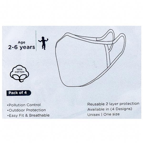 Morisons Face Mask presents a pack of 4 babyface masks made of soft, breathable material. The mask provides protection against pollutants, dust, allergies, and germs. The lightweight, comfortable masks are reusable. The ear loops are easy to adjust so that the mask can fit perfectly over the nose and mouth. The colorful prints add a sense of fun that helps kids feel more comfortable with the idea of wearing a face mask.