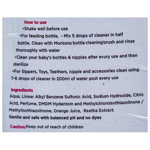 A mother biggest fear is the hygiene of her baby as well as the accessories which her baby puts in his mouth. Just add few drops in a vessel and clean all your baby products such as nipples, bottles, toys, pacifiers and other accessories. It cleans all the residues present in bottles and nipples. It kills bacteria or fungi and goes gentle on mother’s hands. The cleaner is made of 100% food grade ingredients which ensure baby’s health & hygiene.