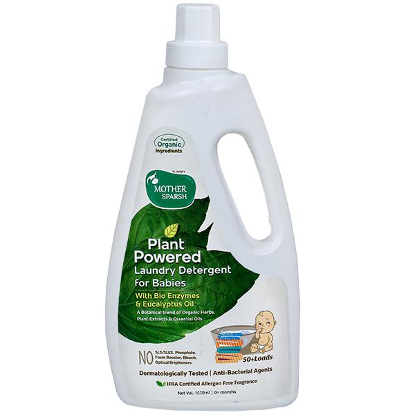 Mother Sparsh Plant Powered liquid Laundry Detergent for babies has accurate blend of Botanical herbs which is perfect for cleaning babies washable such as baby clothes, towels, sheets, bedding, bib, woolen blankets and washable diapers. Our liquid detergent for babies is concentrated & added with Bio- enzymes which helps in removing tough milk residue, dirt & bad odour. Eucalyptus oil & Neem extracts in this baby detergent provides anti-bacterial property & leaves mild refreshing feel after every wash. Also, this mild liquid detergent is dermatologically tested & doesn’t contain any harsh chemicals such as SLS/SLES, dyes, phosphates, foam booster, bleach & parabens