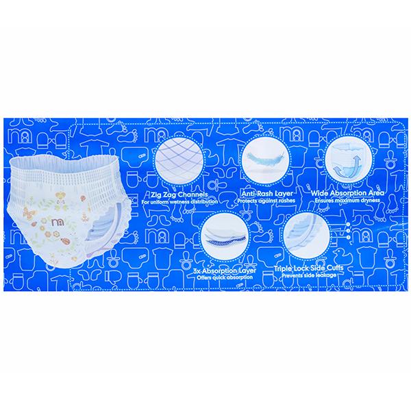How To Use - Clean the diaper area with Baby Wipes. Pull and stretch the readjustable adhesive tape. Place the diaper under baby's body and adjust the diaper below the navel. Assemble the adhesive. Readjust if needed, to tape (white) on the ensure a comfortable fit.