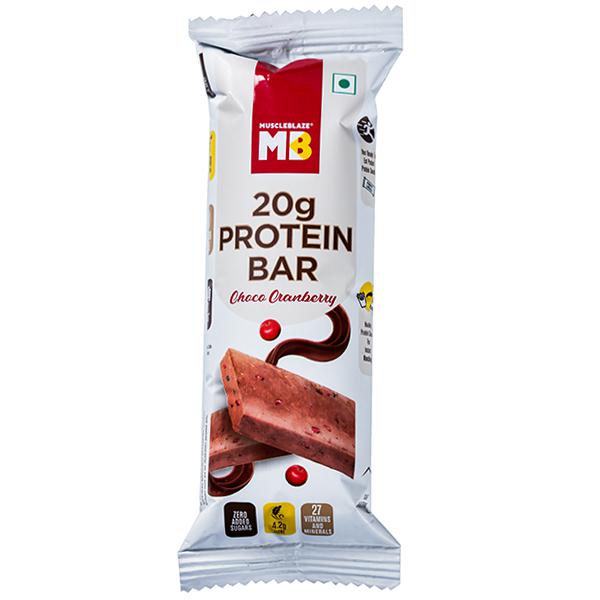 MuscleBlaze brings to you the Protein Bars in delectable choco cranberry flavour with 20g of protein in each of them. These minis are super compact and small which makes it easier to carry as many bars around. Loaded with the goodness of 3.50g of fibre in each bar, these bars are enriched with 27 vitamins and minerals which help strengthen the immunity by providing vital micronutrients and antioxidants. These minis are crafted to satiate the pesky hunger pangs which show up out of nowhere. As it satiates hunger at unnamed hours several times a day, this mini protein bar helps in your weight management goals. It helps you avoid unhealthy snacking by filling your body with all things good. Grab these MuscleBlaze minis and munch guilt-free anytime and anywhere.