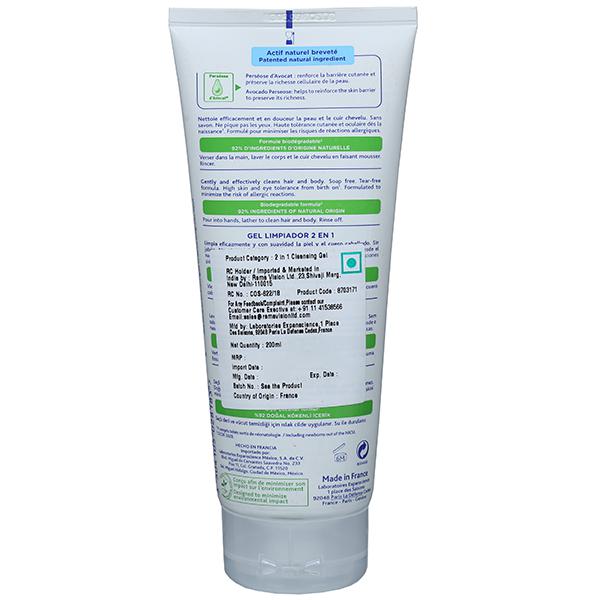 Product Information :- Properties: Gentle foaming cleansing gel, body and hair, ideal for daily use from birth on. Thoroughly cleanses while protecting the skin and delicate scalp of the baby or child. Soothes the skin and compensates for the drying effects of bathing. Tear-free formula. Composition: Avocado perseose, patented natural ingredient: Protects the skin barrier, moisturizes, and preserves the skin cellular richness. Vitamin b5: Soothes. Mild surfactants: Gently cleanse to prevent dry skin. Soap-free. Direction for use: Pour into hands, lather to clean hair and body. Rinse off.
