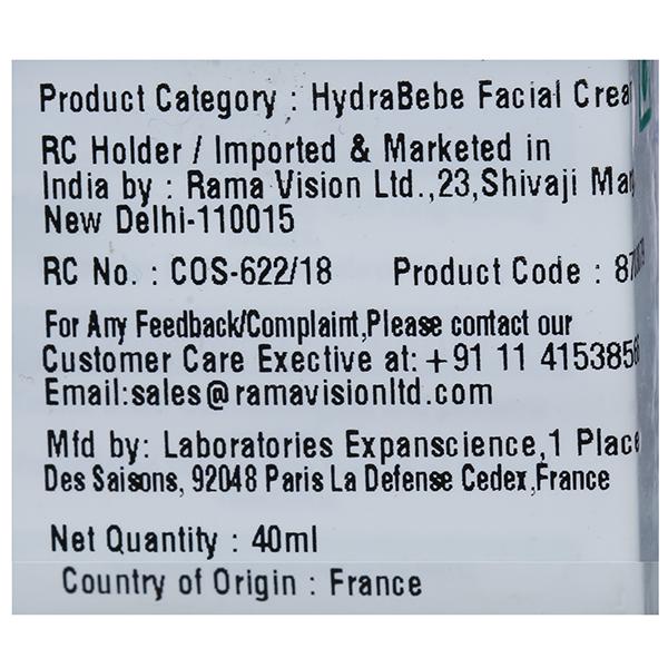 Product Information :- Mustela's iconic Hydra Bébé Facial Cream cream just got better. Our new formula contains double the amount of plant-based glycerin for 24 hour hydration. This exceptionally rich face cream penetrates effortlessly to deliver immediate and long-lasting moisture to your baby's delicate face. Thoughtfully formulated with 97% naturally-derived ingredients including Jojoba Oil, Sunflower Oil, Vitamin E and our signature Avocado Perseose, Hydra Bébé Facial Cream protects and delivers unparalleled moisture to your baby's face. Its non-greasy lotion formula keeps your baby's face silky-smooth and leaves a hint of Mustela's beloved and iconic fragrance on your baby's cheeks. Use in conjunction with Hydra Bébé Body Lotion for complete hydration and moisture. Paraben, Phthalate, Silicone and Phenoxyethanol free. Hypoallergenic, and specially formulated to minimize the risk of allergic reactions. Travel-friendly.