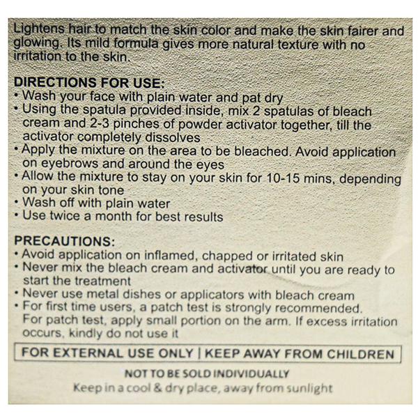 How to use 1. Wash your face before applying the bleach 2. Mix a teaspoon of the bleach cream with ¼ bleach powder 3. Mix the two for about one minute 4. Apply the mix carefully on your face and neck area 5. Leave it on for 15 minutes 6. Clean off the bleach using cotton ball & rinse with cold water