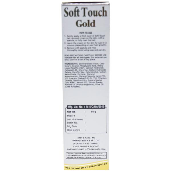 Product Information - Soft Touch Gold. Hair Removal cream. Moisturizes your skin and makes it supple.