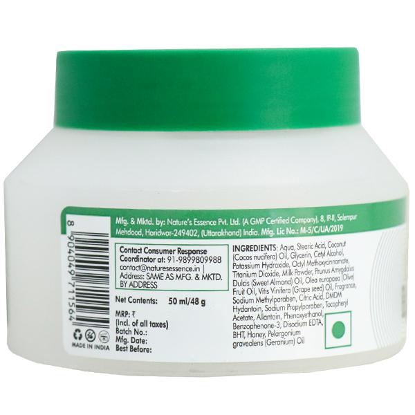 Product information- Expect a whole lot of admiration from the people around you for your remarkable skin by using the Nature's Essence lacto bleach cream. You can now enjoy going in the sun is up without any fear. Imbibed with a mix of milk proteins, honey and lavender oilHow to use :- Take out the desired amount into clean hands and massage in a circular motion all over the face. Rinse thoroughly. Use morning and at night
