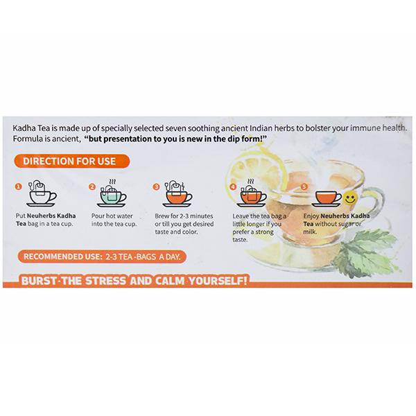How to use: Put Neuherbs Kadha Tea bag in a teacup. Pour hot water into the teacup. Brew for 2-3 minutes or till you get the desired taste and color. Leave the tea bag a little longer if you prefer a stronger taste. Enjoy Neuherbs Kadha Tea without sugar or milk.