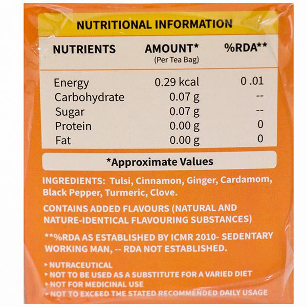 Tulsi, Cinnamon, Ginger, Cardamom, Black Pepper, Turmeric, Clove.