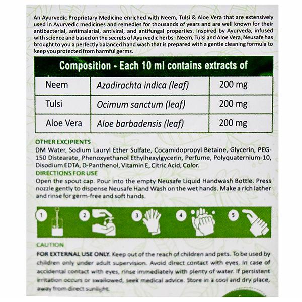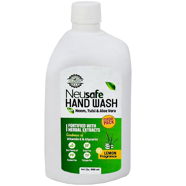 Your hands are most susceptible to germs- Although they look clean after a wash with plain water, they actually aren’t. Your hands touch a number of surfaces throughout the day, which leads to accumulation of various unseen germs on the hands that cause health issues or infections and requires frequent & efficient hand wash to protect you & your family. To fight off these germs, Neusafe has come up with an effective formulation- Liquid hand wash with Neem, Tulsi & Aloe Vera that gives your hands daily essential protection & help prevent spread of sickness-causing germs with the powerful antimicrobial action of tulsi and neem extract in every wash. Harsh on germs, this Neusafe liquid handwash is soft on your hands with the goodness of Aloe Vera, Vitamin E and glycerin that does not harm your hands & keeps them soft and protected with skin-friendly pH. Also, Neusafe liquid hand wash is Soap-free, Paraben-free, Triclosan-free and its mega value pack does not let you stop washing your hands and help you get hygienically clean- refreshed & healthy hands with the pleasant fragrance of lemon throughout the day.
