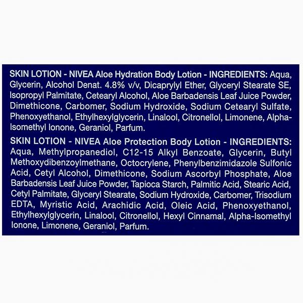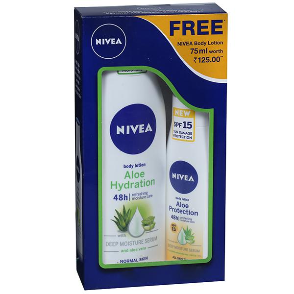 Gift your skin the goodness of Nivea Aloe Hydration Body Lotion for all day long smooth skin. Enriched with aloe vera extracts, it soothes dry & irritated skin and leaves you with comfortable, soft skin.