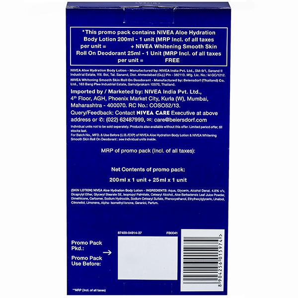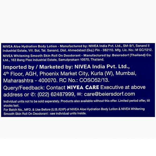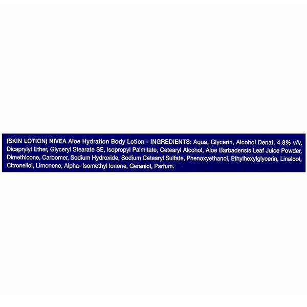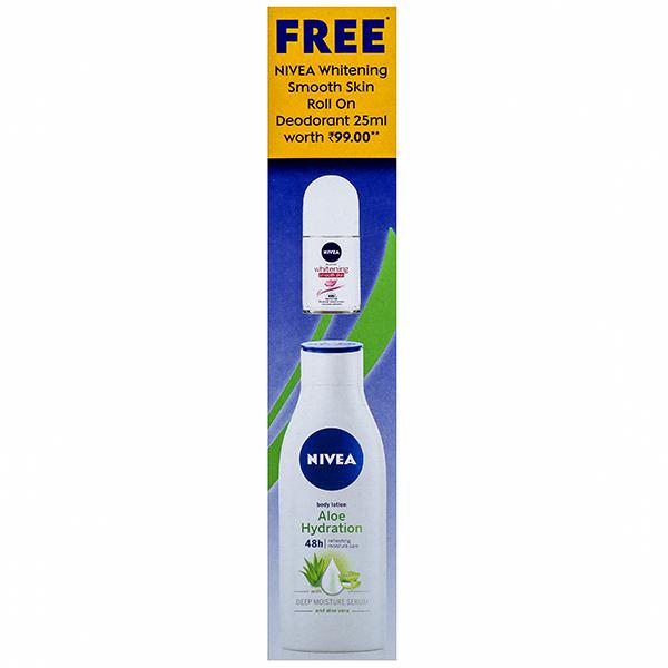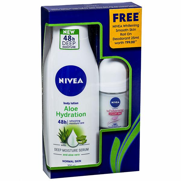 Gift your skin the goodness of Nivea Aloe Hydration Body Lotion for all day long smooth skin. Enriched with aloe vera extracts, it soothes dry & irritated skin and leaves you with comfortable, soft skin.
