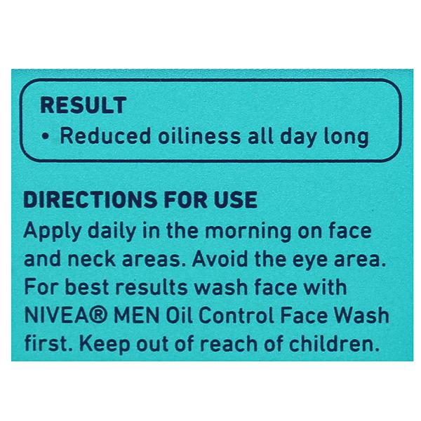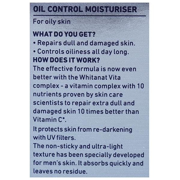NIVEA MEN Oil Control Moisturiser, with its ultra-light texture, contains whitanat vita complex plus - a vitamin complex with 10 nutrients, including whitanat, that is proven to repair dull and damaged skin and control oiliness. The effective, fast-absorbing formula also contains UV filters to protect the skin and is specially designed for men's skin.
