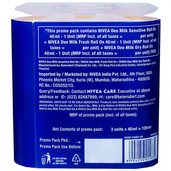 Pack Of- 3 (Nivea Deo Milk Sensitive, Milk Fresh, Milk Dry)