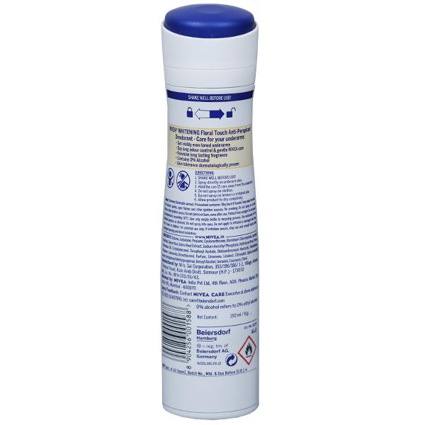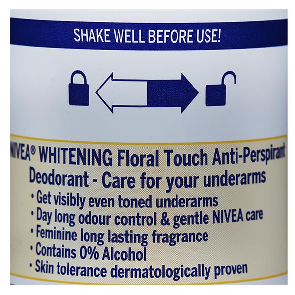 Product Information - Nivea Whitening Floral Touch Deodorant is skin friendly anti-perspirant deodorant with a mild fragrance.