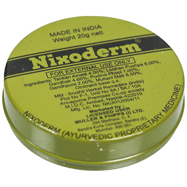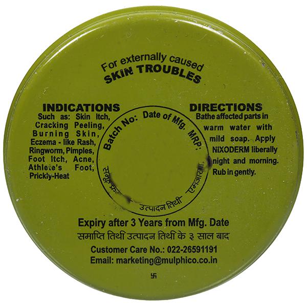 Nixoderm Ointment is an ayurvedic proprietary medicine recommended to relieve conditions like skin itching, cracking peeling, burning skin, an eczema-like rash, ringworm, pimples, foot itch, acne, athlete’s foot, and prickly-heat.