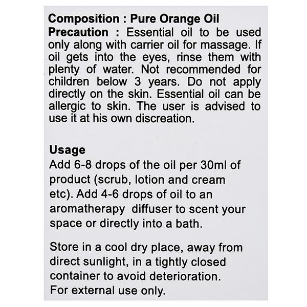 Product Information - Orange oil acts as a mild sedative taking away mental and physical fatigue, pair anger and other feelings. Orange oil is an antiseptic and ideal for your skin and hair routine. It helps to remove tan and circulates blood flow..
