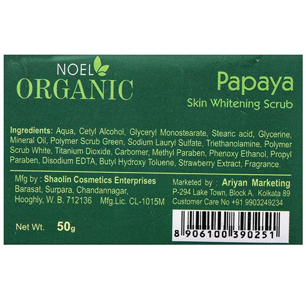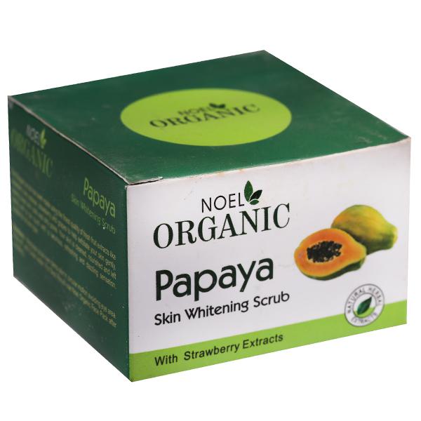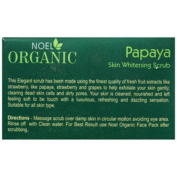 Massage scrub over damp skin in a circular motion avoiding the eye area. Rinse off with clean water. For best results use the Noel Organic face pack after scrubbing.