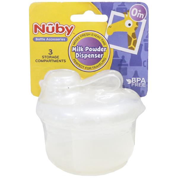 Nuby Milk Powder Dispenser is easy and convenient to use. It is divided into three sections to help with pre-measuring milk powder. It is great for storing cereals and baby food when you are on-the-go! Features: BPA free Perfectly sized for traveling Larger lid also securely snaps on Fast and convenient