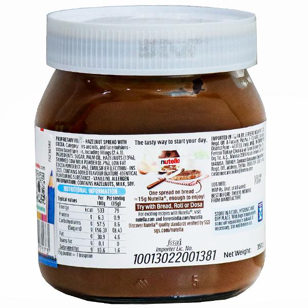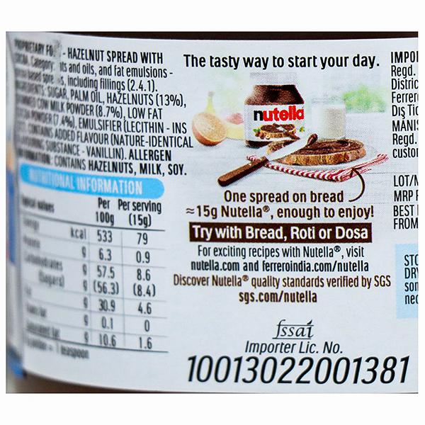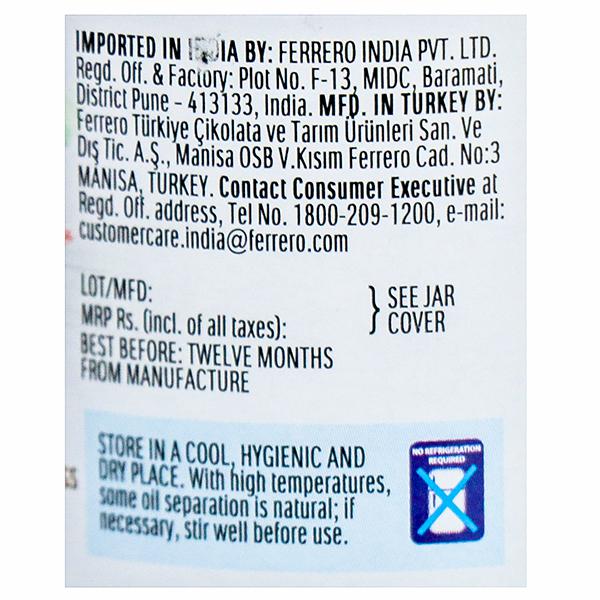 Ingredients- Sugar, Edible Vegetable Oil, Hazelnut (13%), Low Fat Cocoa Powder (7.4%), Skimmed Cow Milk Powder (6.6%), Whey Powder, Emulsifier (Letchin - Ins 322). Contains Added Flavour (Nature-Identical Flavouring Substance - Vanillin) Allergen Information: Contains Hazelnut, Milk Soy.