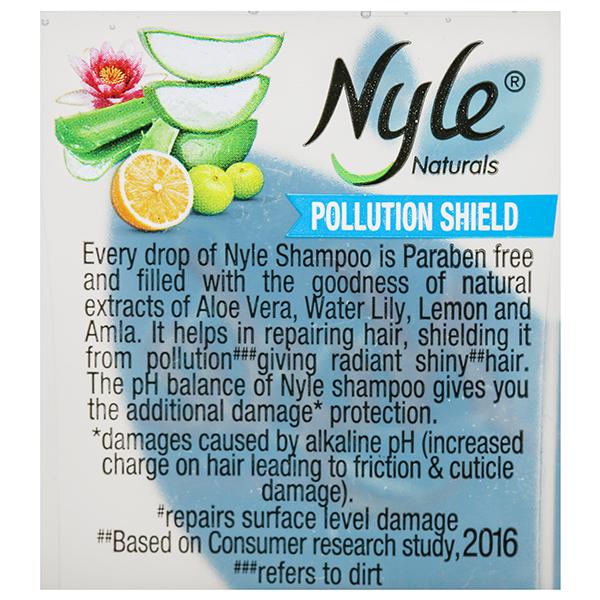 Product Information – Every drop of Nyle Pollution Shield Shampoo is Paraben free and filled with the goodness of natural extracts of Aloe Vera, Water Lily, Lemon and Amla. It helps in repairing hair, shielding it from pollution giving radiant shiny hair. The pH balance of Nyle shampoo gives you the additional damage protection.