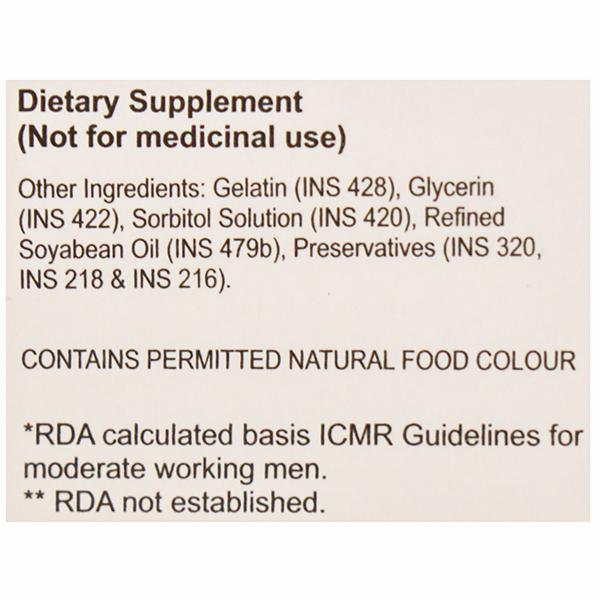 Gelatin (INS 428), Glycerin (INS 422), Sorbitol Solution (INS 420), Refined Soyabean Oil (INS 479b), Preservatives (INS 320, INS 218 & INS 216)