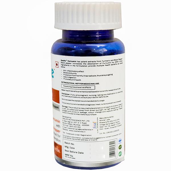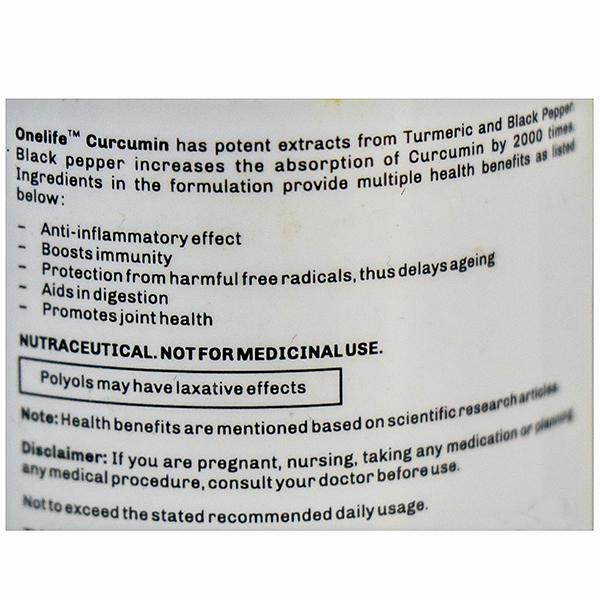 OneLife Curcumin has numerous health benefits and is the primary active ingredient of turmeric and black pepper which enhances its absorption and making the formulation a potent antioxidant, which in turn has natural anti-microbial and anti-inflammatory properties and supports immunity. The bioavailability of curcumin is increased up to 2000 times due to the presence of black pepper, thus making it very effective. Curcumin is also known to support anti-ageing and joint health.