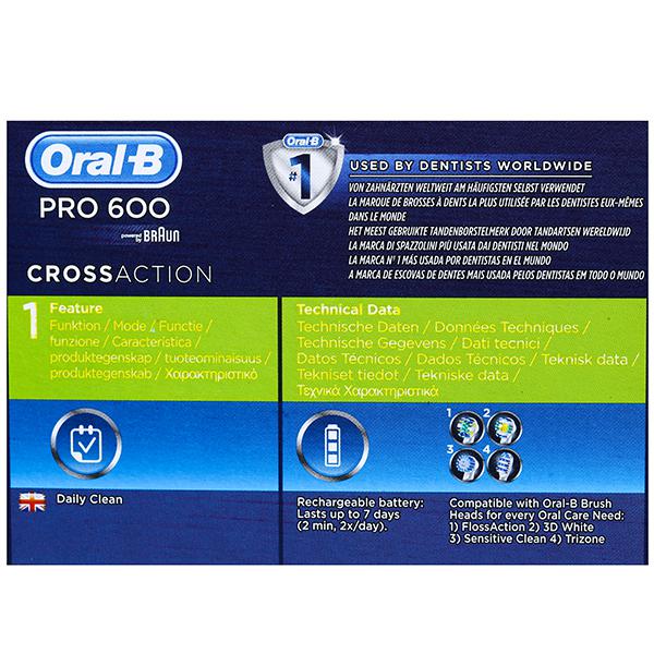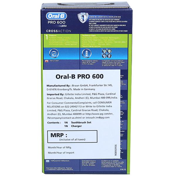 With the Oral-B Pro 600 toothbrush, get clean teeth with up to 100% more plaque removal as it offers a superior 3D Cleaning Action. With a 2-minute professional timer, this toothbrush ensures that you’ve brushed for the optimal amount of time. In addition to this, it offers effective interdental cleaning with the Cross Action Toothbrush Head to give you complete dental protection.