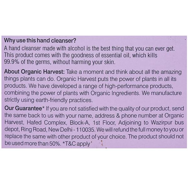 Product Information - Organic Harvest Hand cleanser which works as a hand sanitizer makes hand cleaning quicker and more effective than ever before. It contains its patented germ kill formula ensuring your hands are clean and protected against germs. This hand wash gives 99.9% germ protection.