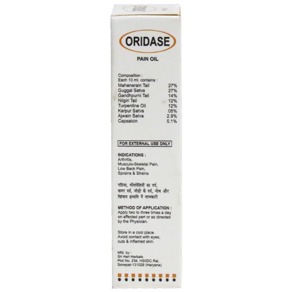 Oridase Pain Oil is an anti-inflamatory-analgesic pain relieving oil, that is recommended for managing arthritis pain, musculo-skeletal pain, low back pain, sprains & strains.
