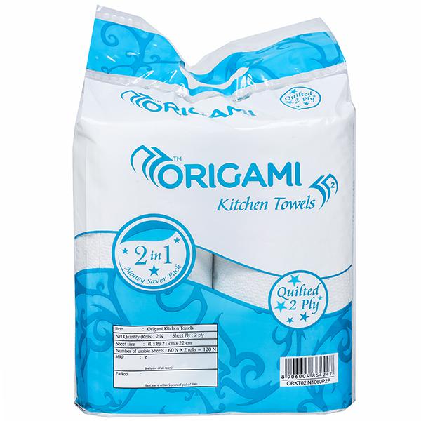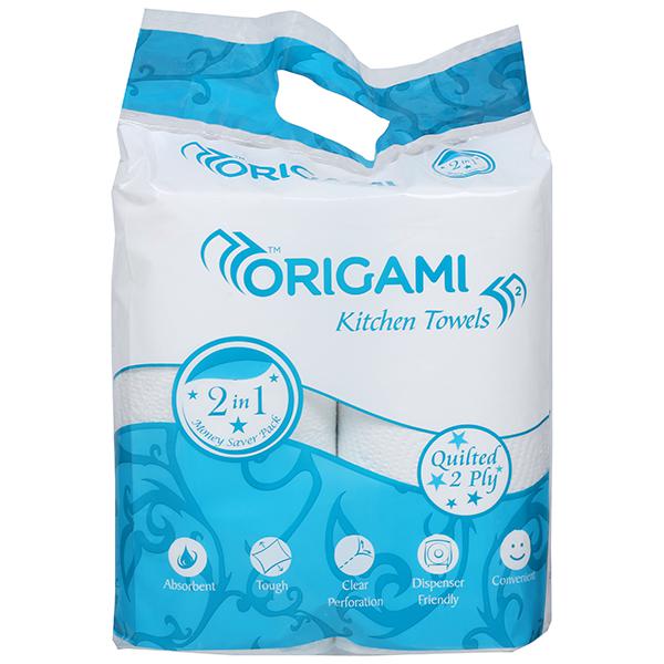 Product Information- Origami helps keeping your kitchen neat and clean with this unique range of kitchen towels. They are highly absorbent and help to clean wet surfaces more easily. These towels are dispenser friendly, convenient, tough and have clear perforation.