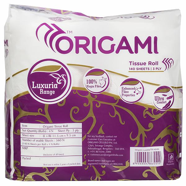 Product Information- Origami Luxuria range Tissue Roll presents premium quality of imported tissue. Ideal for both men and women, it absorbs dirt particles and cleans the skin. It helps to avoid skin related problems caused by dirt, and is gentle on your skin. It is a multi purpose tissue, ideal to use in the home, office and while travelling.
