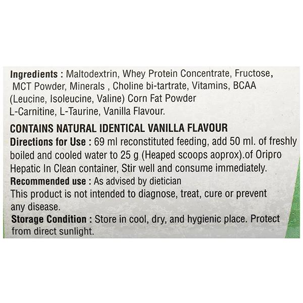 Product Information - Oripro Hepatic is a specially formulated calorie-dense nutrition supplement for liver disorders with 100% Whey Protein Concentrate, moderate in protein content, rich in branched chain amino acids and low on fat content. This diet helps the liver function and protects it from working too hard.