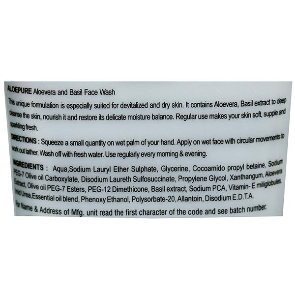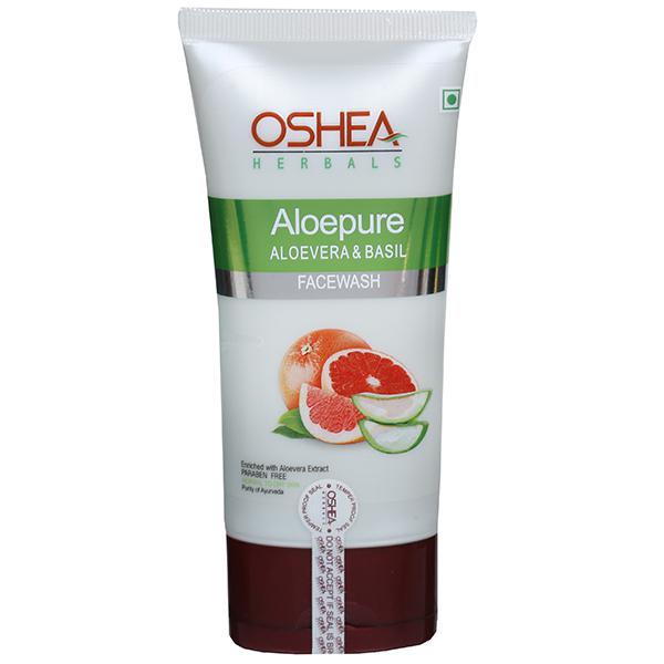 Oshea Herbals Aloepure Aloe Vera And Basil Face Wash revives your skin. This all-natural formula facewash with a nourishing blend of jojoba oil, aloe vera extract, basil extract and vitamin E milli globules, deep cleanses, nourishes and restores the skin's natural moisture balance. Regular use of this face wash gives you refreshed, hydrated and clear skin.