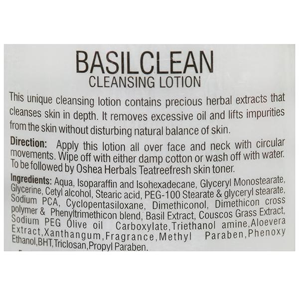 Oshea Herbals Basilclean Cleansing Lotion contains precious herbal extracts that cleanse skin in depth. It removes excessive oil & lifts impurities from the skin without disturbing the natural balance of the skin.