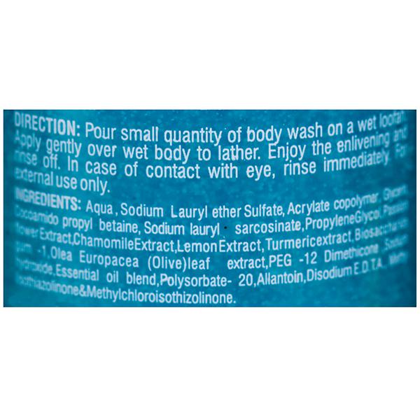 Direction of use - Pour small quantity of body wash on a wet loofah. Apply gently on wet body to lather. Enjoy the enlivening and rinse off. In case of contact with eye, rinse immediately. For external use only.