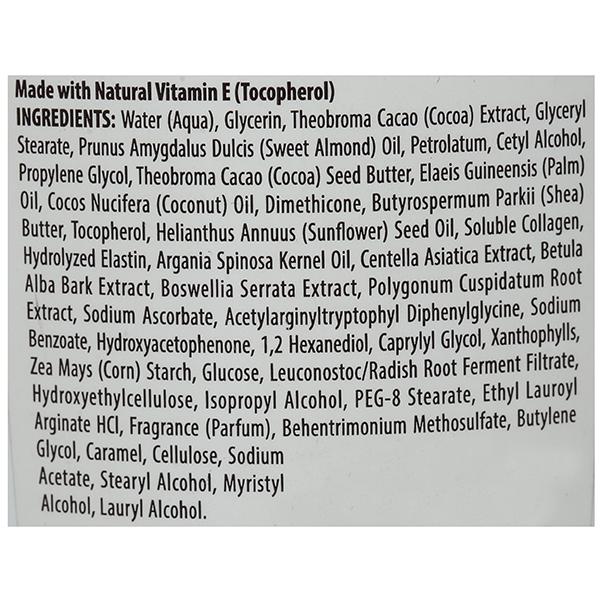 Composition - Cocoa Butter, Vitamin E, Sweet Almond Oil, Centella Asiatica, Shea Butter, Elastin, Collagen, Argan Oil