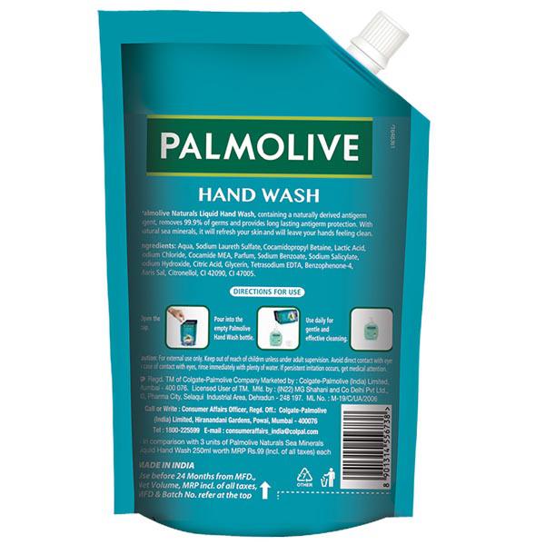 Product Information - Palmolive Naturals Hand Wash, with the natural goodness of Sea Minerals, deep cleans your hands every time you wash them. Containing Sea Salt of 100% natural origin, the liquid handwash is effective yet gentle on your hands. It also contains anti-germ agent that removes 99.9% of germs and provides long lasting protection. The special formula of this handwash pampers your hands with every wash and delights your senses with its unique fragrance.