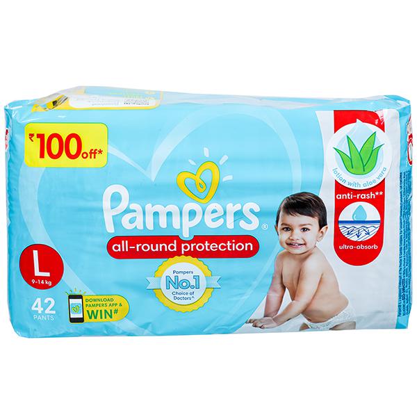 Pampers Baby-Dry pants style diapers are the only pants in India with Ultra Absorb Core, Double Leak Guards and Lotion with Aloe Vera. Ultra Absorb Core provides your baby a new type of dryness overnight - breathable dryness. Magic gel locks wetness away to provide up to 12 hours of dryness. Now infused with baby lotion that has Aloe Vera, helps protect your baby’s delicate skin from diaper rash and irritation. The new and improved product design enables a comfortable fit, closer to the baby’s body and a flexible waist band that adapts to baby’s movements for a comfortable fit. A top layer with cotton-like soft material ensure a comfortable night’s sleep. Our pants with fun exterior graphics, fun designs and characters ensure you enjoy with your baby.