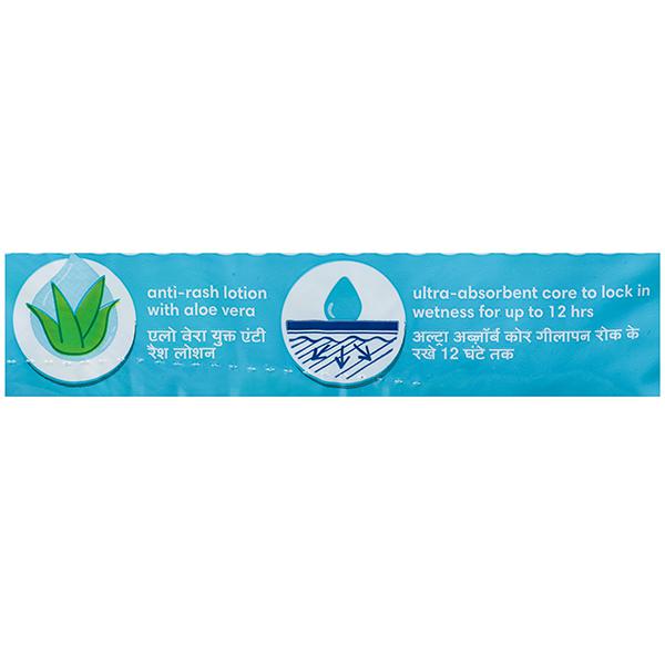 Pampers Baby-Dry pants style diapers are the only pants in India with Ultra Absorb Core, Double Leak Guards and Lotion with Aloe Vera. Ultra Absorb Core provides your baby a new type of dryness overnight - breathable dryness. Magic gel locks wetness away to provide up to 12 hours of dryness. Now infused with baby lotion that has Aloe Vera, helps protect your baby’s delicate skin from diaper rash and irritation. The new and improved product design enables a comfortable fit, closer to the baby’s body and a flexible waist band that adapts to baby’s movements for a comfortable fit. A top layer with cotton-like soft material ensure a comfortable night’s sleep. Our pants with fun exterior graphics, fun designs and characters ensure you enjoy with your baby.