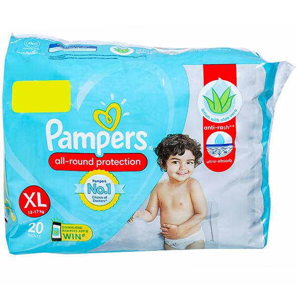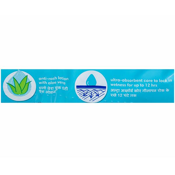 Pampers Baby-Dry pants style diapers are the only pants in India with Ultra Absorb Core, Double Leak Guards and Lotion with Aloe Vera. Ultra Absorb Core provides your baby a new type of dryness overnight - breathable dryness. Magic gel locks wetness away to provide up to 12 hours of dryness. Now infused with baby lotion that has Aloe Vera, helps protect your baby’s delicate skin from diaper rash and irritation. The new and improved product design enables a comfortable fit, closer to the baby’s body and a flexible waist band that adapts to baby’s movements for a comfortable fit. A top layer with cotton-like soft material ensure a comfortable night’s sleep. Our pants with fun exterior graphics, fun designs and characters ensure you enjoy with your baby.